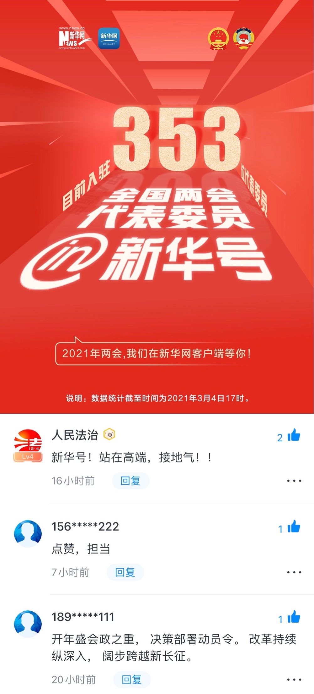 ▲353位全国两会代表委员入驻“新华号”,邀您两会“云上见”。