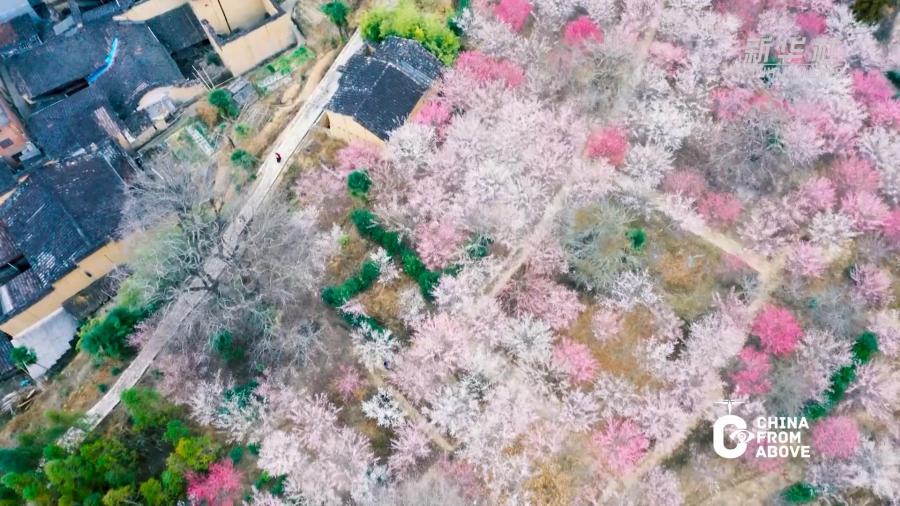 在福建省屏南县芳院村,梅花纷纷盛开,与古村相映成趣。