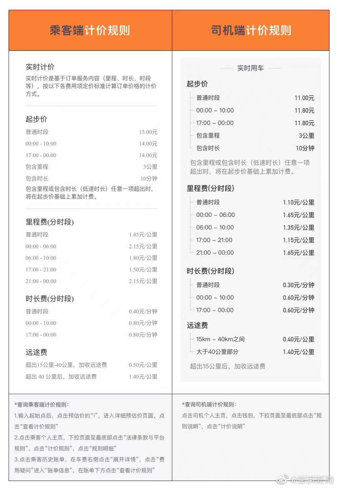 ▲滴滴北京快车业务乘客端和司机端计价规则。图片来源:滴滴网约车关于“抽成”的说明