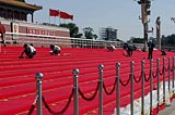 天安门临时观礼台铺设红地毯[组图]