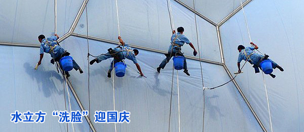 水立方“洗脸”迎国庆