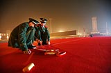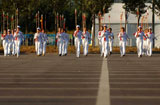 北京国旗护卫队广场红毯上标注行进参考线[组图]