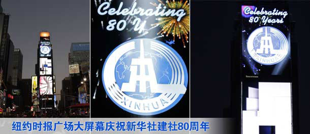 纽约时报广场大屏幕庆祝新华社建社80周年
