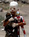 “面具娃娃”湘湘和网友:因为面部重度烧伤,为帮助植皮恢复,6岁的他只能终日戴着一只紧绷的头套。为了帮助这让人心疼落泪的“面具娃娃”,网络上掀起了一场“爱心总动员”。