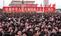 全国各族各界群众欢度国庆节喜迎“十六大” 在喜迎党的十六大胜利召开的日子里,人们又迎来了共和国的53周年华诞。今天,全国各地各族群众载歌载舞,欢声笑语,以喜悦的心情和丰富多彩的活动共庆佳节。