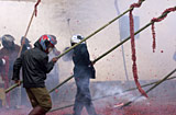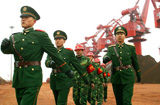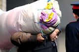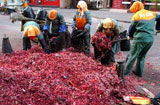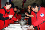大连环卫工人与市民上街清扫鞭炮屑[组图]