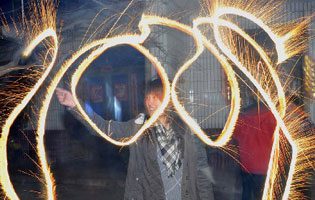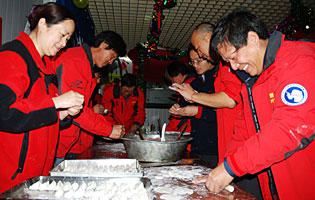风雪阻挡回家路 工地欢乐过大年[组图]