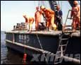 “57”空难打捞船在锁定“黑匣子”位置附近抛锚