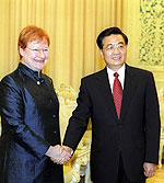 胡锦涛副主席会见芬兰总统哈洛宁