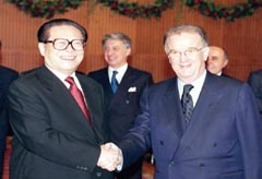 江泽民、朱镕基共同会见芬兰总统阿赫蒂萨里