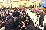 温家宝总理来到人民大会堂三楼中央大厅会见中外记者