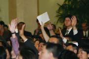 记者在踊跃举手提问
