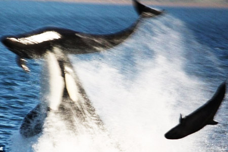杀人鲸上演猎食秀:追杀海豚抛上高空撞断脊柱