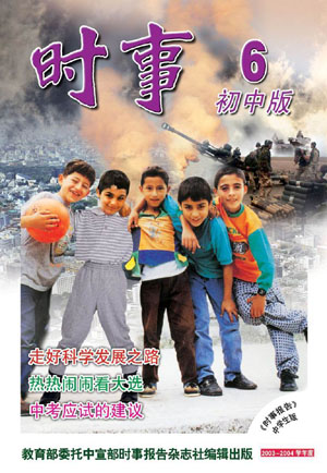 《时事》杂志初中版,32开本,64页内文,四封铜版彩印,每学年均为6期,每册定价2元,每套12元。凡订购100套以下,需加收邮费15%,即每套13.8元。2004年初中版出版时间为2月20日、4月1日、5月10日。
