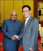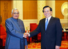 会见瓦杰帕伊 胡锦涛:中印应扩大交往增强互信