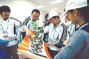 江苏奥运冠军与市民一起为奥运加油