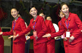 奥运空乘在成都接受业务训练