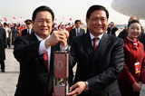 周永康在首都机场迎接奥运会圣火火种[组图]