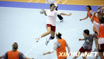 德国手球女队进行适应训练[组图]