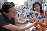 剪纸艺术家孙二林奥运村展示技艺[组图]