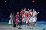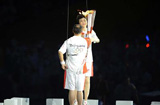 孙晋芳为最后一棒火炬手李宁点燃火炬