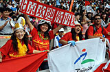 闭幕式上主火炬熄灭后 礼仪小姐们合影留念[组图]