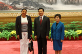 胡锦涛和夫人刘永清与国际残奥委会执委莉拉娜卢比西科合影