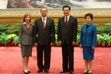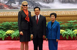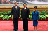 胡锦涛和夫人刘永清与韩国总理韩升洙和夫人合影