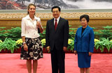 胡锦涛和夫人刘永清与国际残奥委会荣誉委员玛丽亚古兰吉纳合影