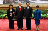 胡锦涛和夫人刘永清与厄瓜多尔副总统莫雷诺和夫人合影