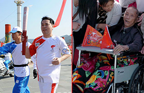 奥运火炬传递爱 把奥运精神传给灾区人民