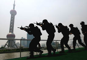 组图:上海举行无预案奥运反恐实兵演练