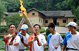圣火绕过丽江古城 灾区女孩携手当地孩子传首棒