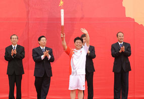 北京奥运圣火在荆州传递[组图]