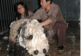 奥运熊猫宝宝震后首次沐浴图[组图]