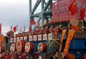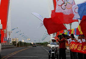 奥运火炬经过神舟友谊大桥