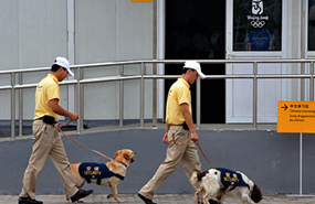 奥运安保搜爆犬全天候巡逻奥运村[组图]