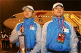 誓死捍卫奥运圣火的残疾火炬手回京[组图]