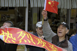 跨国连线:微雨浇不灭奥运激情 五星红旗感动长野