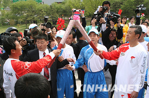 中朝友谊塔下火炬传递 奥运圣火辉映和平正义