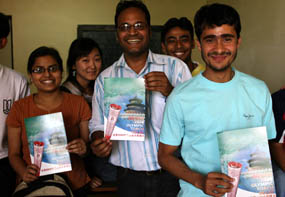 尼赫鲁大学中文系学生欢迎奥运火炬来到新德里