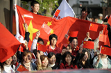 跨国连线:微雨浇不灭奥运激情 五星红旗感动长野
