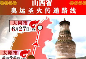 图表:山西省奥运圣火传递路线