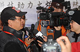 中外媒体在新闻中心关注火炬登顶的直播报道[图]