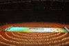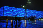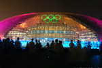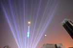 国家大剧院景观灯首次调试 激光打出奥运五环