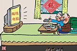 漫画:炕头上看大戏