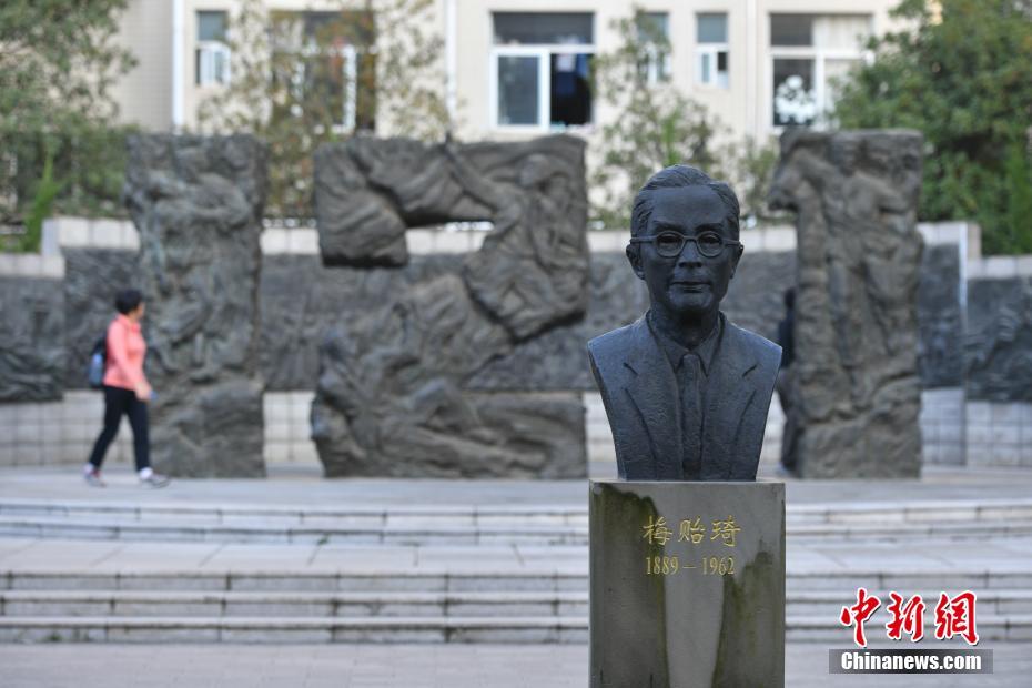 11月1日,云南师范大学内的梅贻琦雕塑。当日,正值西南联合大学建校80周年纪念日。位于昆明云南师范大学内的西南联大旧还保留着许多“联大印记”。中新社记者 任东 摄