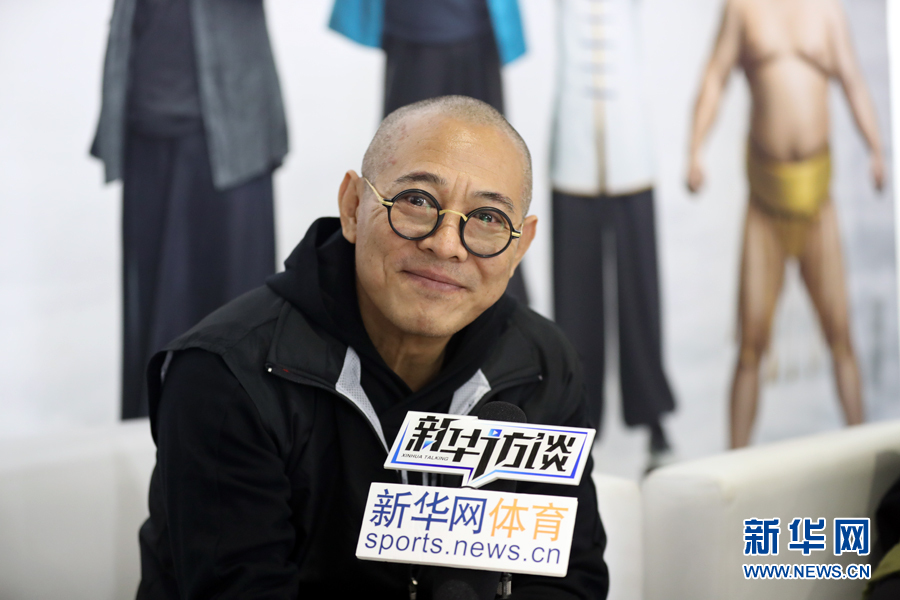 新华网北京11月16日电 基于太极推出的新运动项目--功守道,首场赛事11月15日在北京开幕,李连杰接受新华访谈、新华体育专访,采访中他告诉记者,我希望中国和世界分享太极;渴望我们炎黄子孙,通过太极文化中的简单礼仪,就可以跟全世界共享。图为专访现场。 新华网 陈杰摄