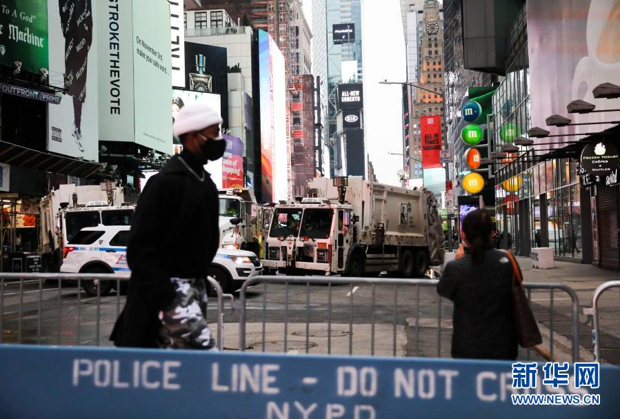 2020年12月31日,美国纽约时报广场附近的路口被封闭,禁止行人进入。新华社记者 王迎 摄