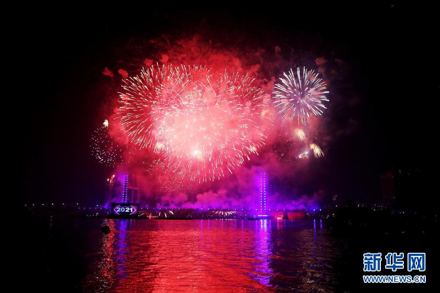 这是1月1日零点过后在埃及开罗拍摄的烟花表演。新华社发(艾哈迈德·戈马摄)